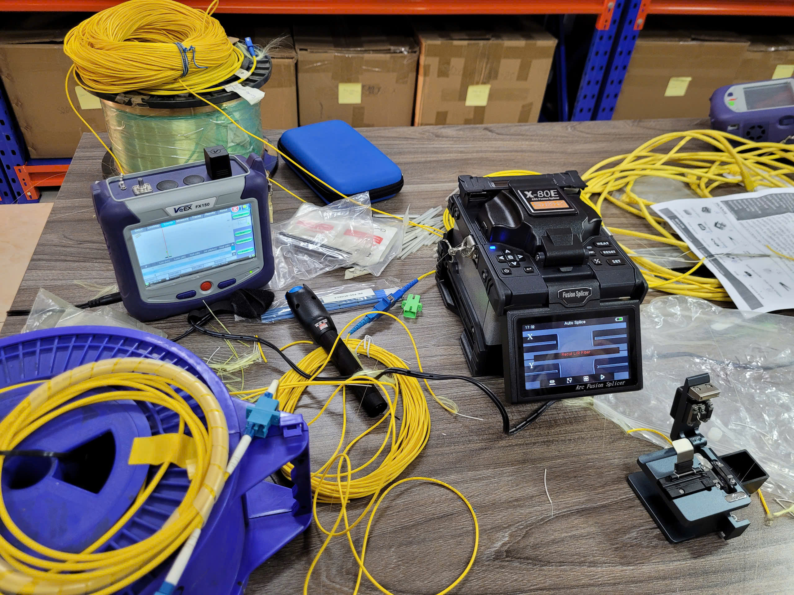 - Máy đo cáp quang: Máy đo OTDR, máy đo thu phát công suất quang, bút soi quang.