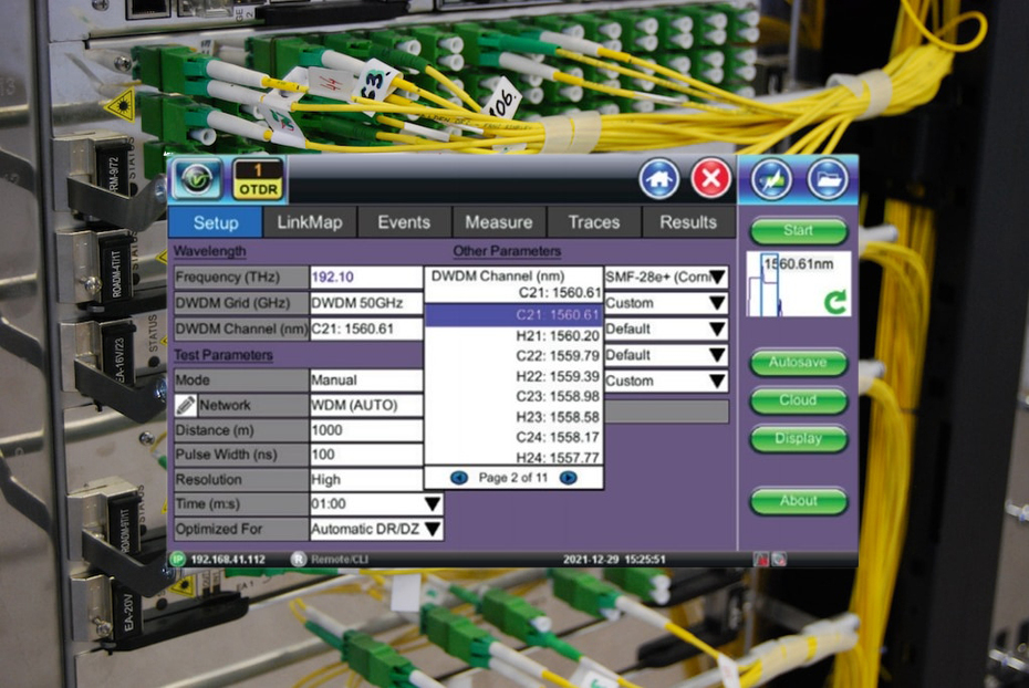 Máy đo OTDR dựa trên DWDM là công cụ để kiểm tra thông qua các thành phần cụ thể theo bước sóng mà không làm gián đoạn các kênh lân cận khác. OTDR gửi một xung ánh sáng qua sợi quang và theo dõi